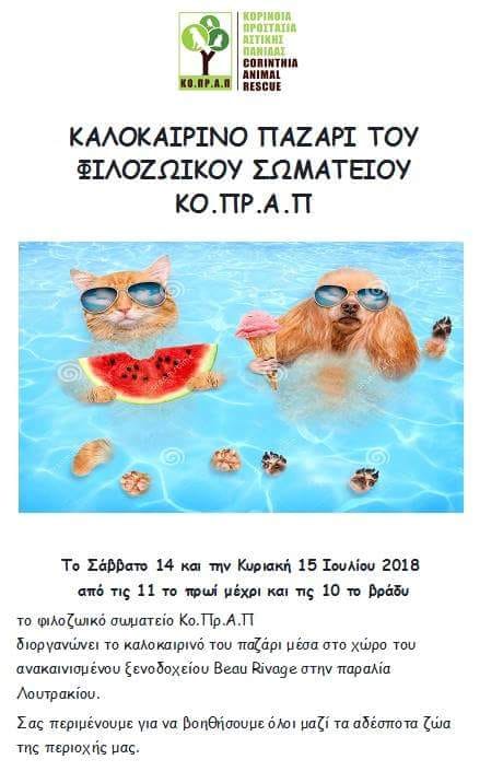 Σάββατο14 και Κυριακή 15 Ιουλίου, από τις 11 το πρωί μέχρι και τις 10 το βράδυ,το φιλοζωικό σωματείο Κο.Πρ.Α.Π